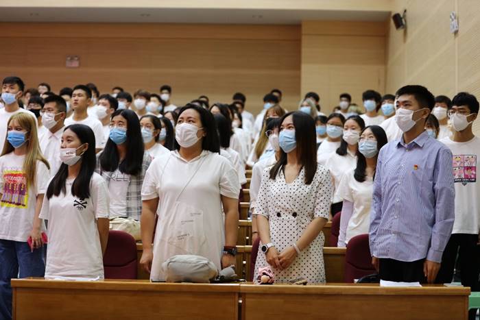 9月3日上午,工藝美術系2021級新生見面會在順義校區西階梯教室召開,會議在全體合唱的國歌聲中拉開帷幕。