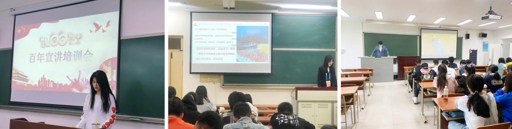 9月23日,參加宣講的同學們接受了培訓。進班宣講活動于10月份正式開展。48位宣講團成員從舞臺呈現、黨史延伸、經歷感受三個方面向大家呈現了文藝匯演中自己感觸最深的兩個節目,將自己的所看所想分享給更多的同學們。同學們認真觀看,認真感受,了解了黨史資料背后的故事,深刻領會到中國共產黨領導中國人民共同奮斗這一百年給中國帶來的巨大變化,也體會到了中國共產黨從始至終勇于探索、敢為人先、不怕犧牲的精神。