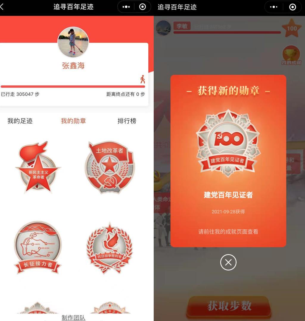 活動依托微信“追尋百年足跡”小程序,將線下累積的微信運動步數兌換成線上虛擬里程數,在百年黨史地圖上行進,逐個解鎖100件(組)黨史大事件,完成重走百年黨史征程,并學習相關內容,“過關斬將”答題。