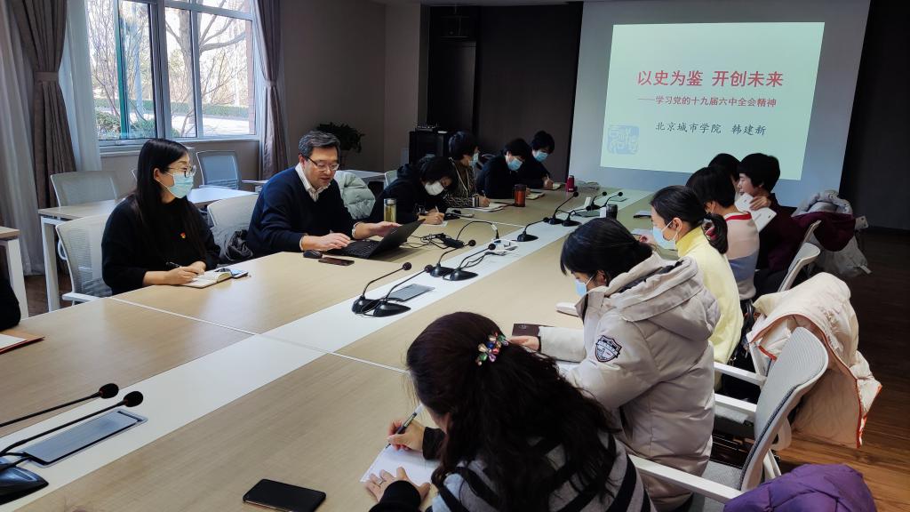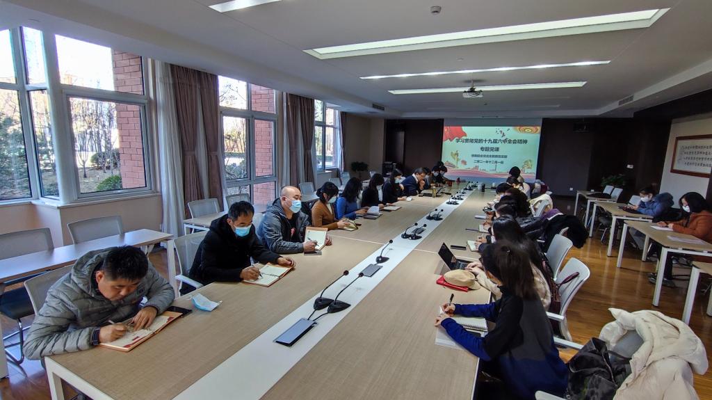 為深刻領會十九屆六中全會精神,準確把握十九屆六中全會精神實質,充分認識黨的百年奮斗重大成就和歷史經驗,12月1日,研教聯合黨總支教師黨支部特邀馬克思主義學院常務副院長韓建新教授主講《以史為鑒 開創未來——學習黨的十九屆六中全會精神》專題黨課。支部全體黨員、入黨積極分子、部分群眾參加學習。