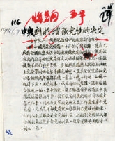 1941年7月1日,中共中央政治局通過的《關于增強黨性的決定》(部分)(中央檔案館藏)