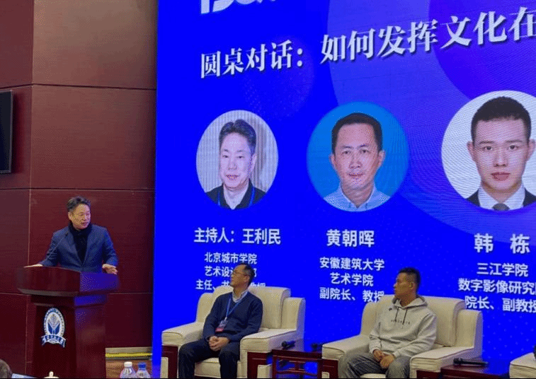 王利民教授作為首都高校特邀嘉賓,主持了“如何發揮文化在科技發展中的引領作用”圓桌對話環節。會上王利民教授就黨的二十大報告中提出“推進文化自信自強,鑄就社會主義文化新輝煌”的宏觀策略,與兄弟院校共議高校設計學科的發展大計。