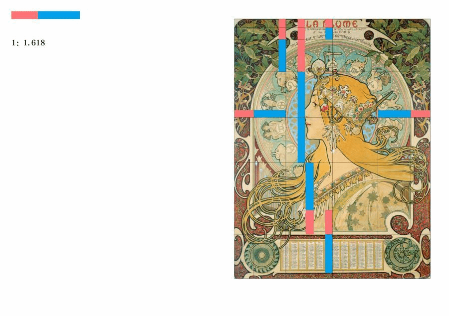 令人印象深刻的是,在介紹《穆夏·新藝術運動先鋒》這本書時,其中的“網格體系”設計方式獲得了大家關注。這是一本穆夏的作品圖集,田老師從穆夏的代表作品中總結了一個規律:他發現每張畫的比例都是1:1.618的黃金比例,于是,在其中提煉出6:9的不規則網格系統,從封面到內文排版都依照了這種倒推式的網格體系而設計。這對大家之后的設計和創作給予了啟發。