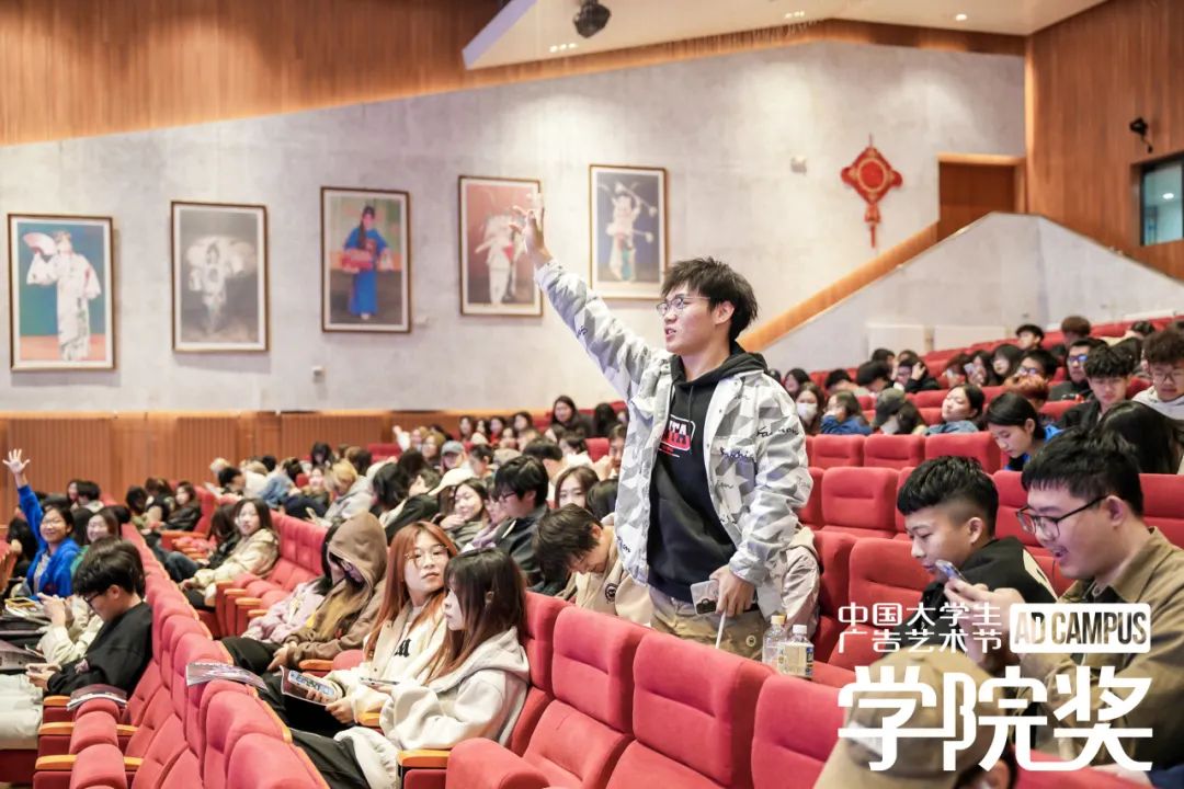 中國大學生廣告藝術節學院獎每年分為啟動儀式、開題、全國高校巡講、作品征集、評審和創意盛典6個部分。全國高校巡講在線下遴選30多所重點高校,帶領命題企業和創意大師走進課堂與高校學子面對面,解析企業命題、溝通創作思想、分享從業心得。