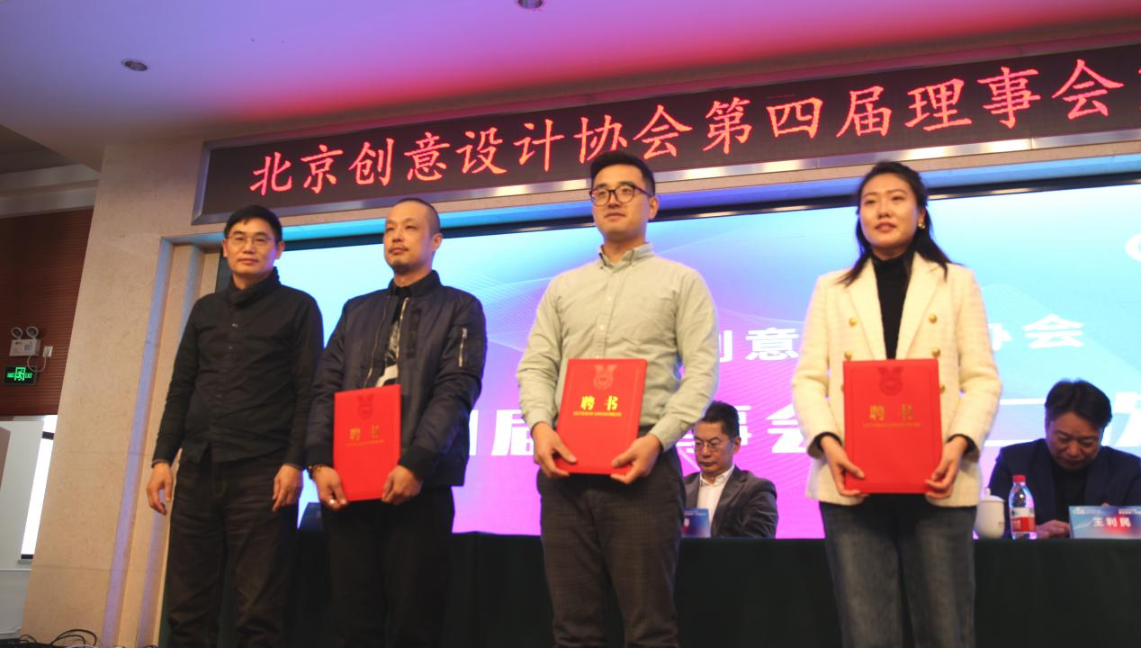 會上,北京創意設計協會第一屆理事會副會長馬江濤,為新任第四屆理事會副會長張繼曉、王利民、周俊良頒發聘書。