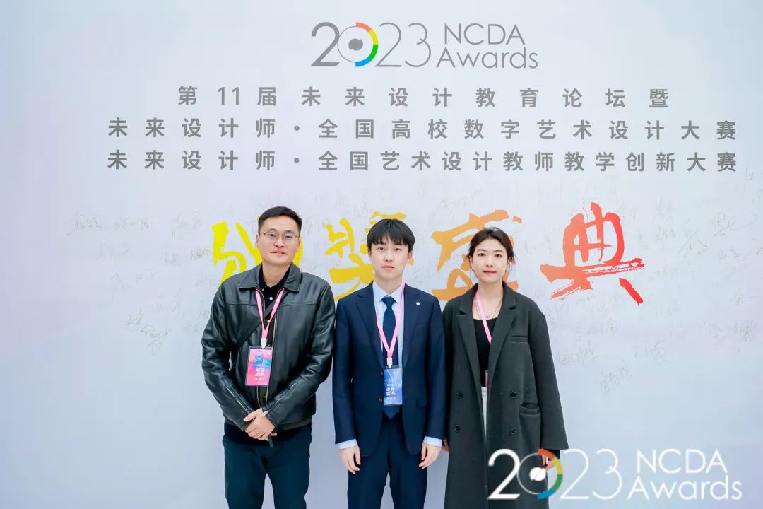 2023年12月1日,我校藝術設計學部環(huán)境設計專業(yè)優(yōu)秀指導教師代表——許偉老師、穆怡然老師帶領全國一等獎獲得者王朗同學參加了第11屆未來設計教育論壇暨未來設計師?全國高校數(shù)字藝術設計大賽(NCDA)、未來設計師?全國藝術設計教師教學創(chuàng)新大賽(NDTC教創(chuàng)賽)頒獎典禮。