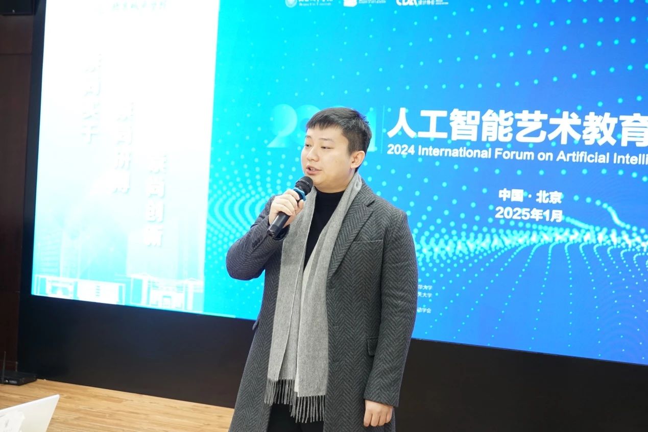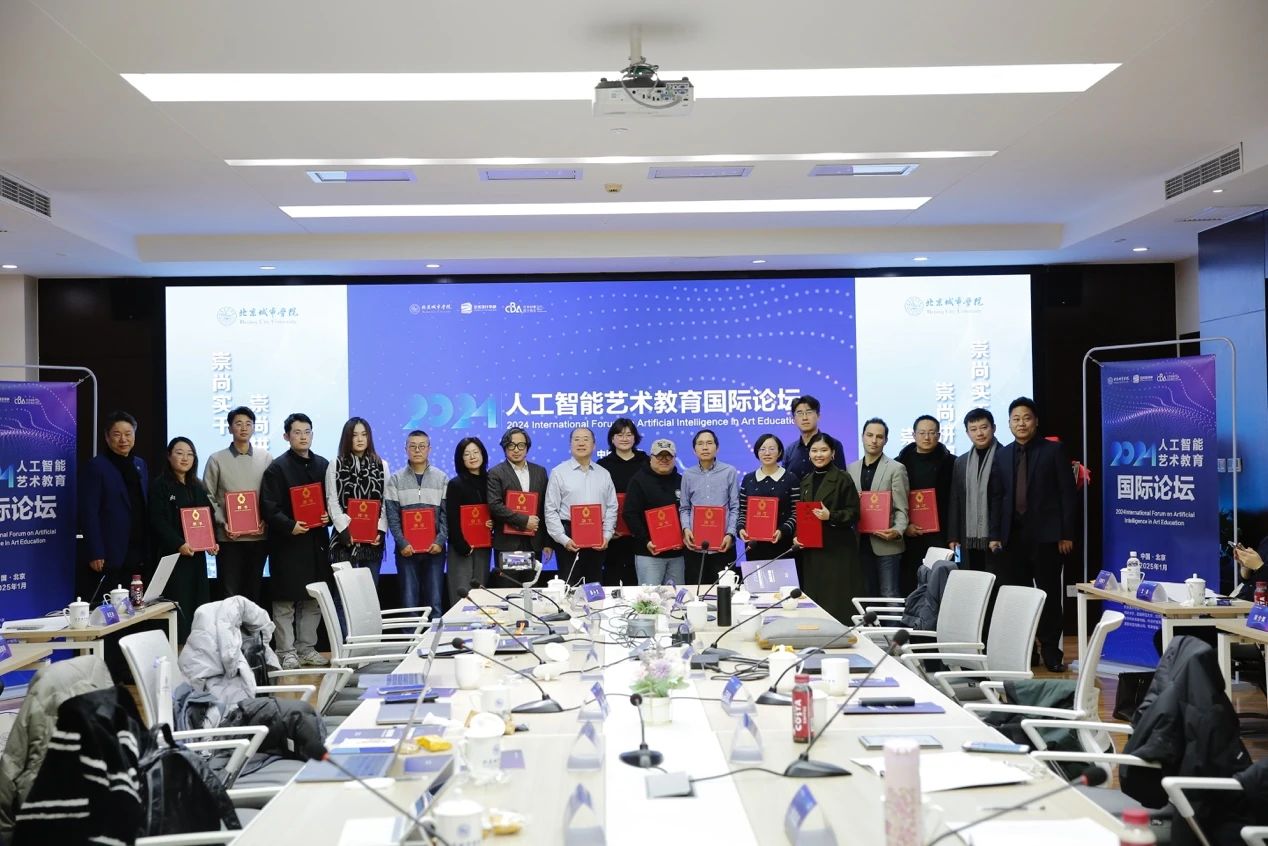 2025年1月6日,人工智能藝術教育國際論壇在我校召開。此次論壇由我校主辦,美國阿爾弗雷德大學、北京大學、清華大學、中央美術學院、中國傳媒大學、天津美術學院、北京航空航天大學、同濟大學、首都師范大學、北京服裝學院、泉州華光職業學院、新華網未來研究院、中關村智用人工智能研究院、中國電子勞動學會、瀾景科技有限公司、葦草智酷等諸多專家學者參會。本次論壇以“人工智能藝術教育國際論壇”為主題,分為開幕式、主題演講、圓桌會議、頒發證書和閉幕式五個環節。來自全球各地的教育專家、人工智能藝術家、科技從業者以及相關領域企業齊聚一堂,共同探討人工智能與藝術教育融合發展的前沿話題。就人工智能藝術教育開展深入交流探討,共同探尋高質量發展背景下我國人工智能藝術教育新路徑。論壇分別由北京城市學院藝術設計學部人工智能藝術研究中心主任楊彥川博士和美國阿爾弗雷德大學陳天禪研究員主持。