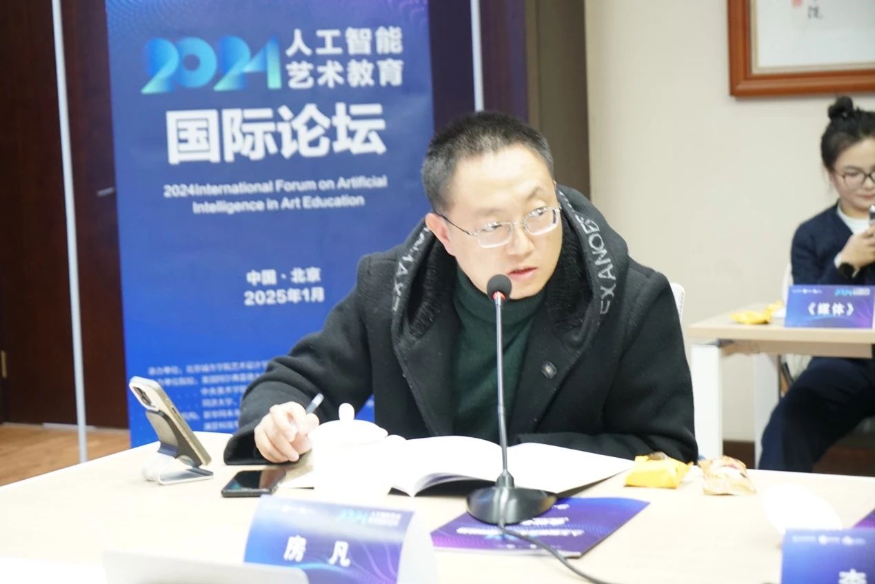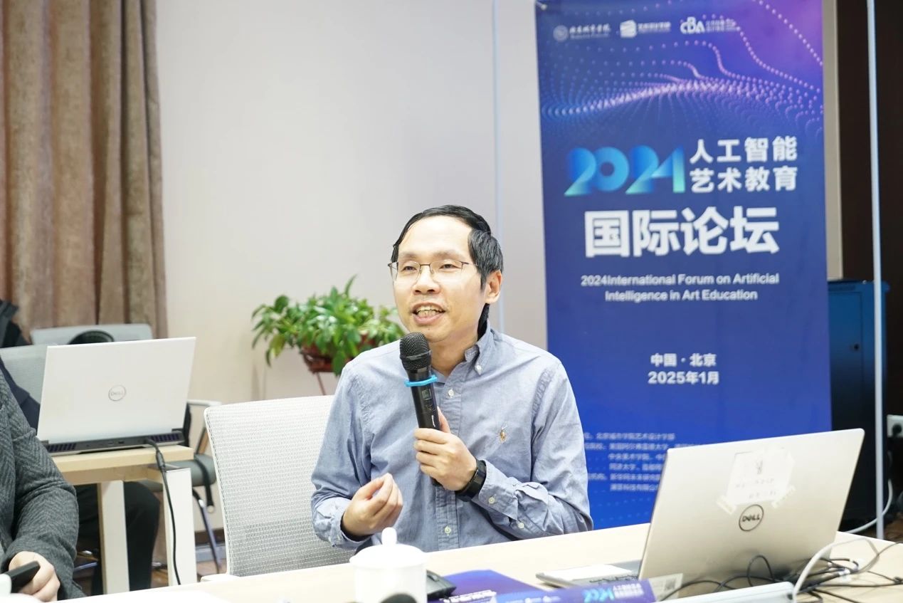圓桌會議環節,學部副主任郭煜強調教學與人工智能接軌的重要性,將 “設計 + AI” 融入培養體系。組建了教師團隊,教授參與教學推廣,建風格、生成式人工智能數據庫,為 AIGC 輔助教學打基礎,推動專業融合、提升學生競爭力。