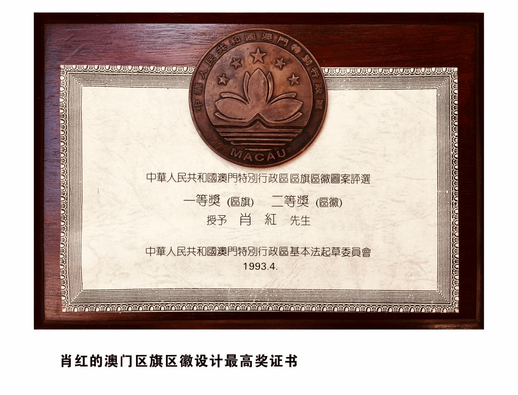 1993年澳門特別行政區區旗區徽設計中獲得區旗設計一等獎、區徽設計獲二等獎,海內外港澳區旗區徽設計中獲最高獎設計者。
