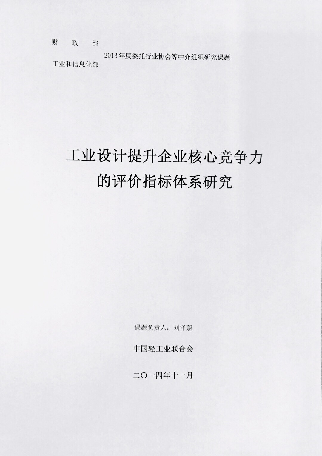 工信部課題《工業設計提升企業核心競爭力的評價指標體系研究》