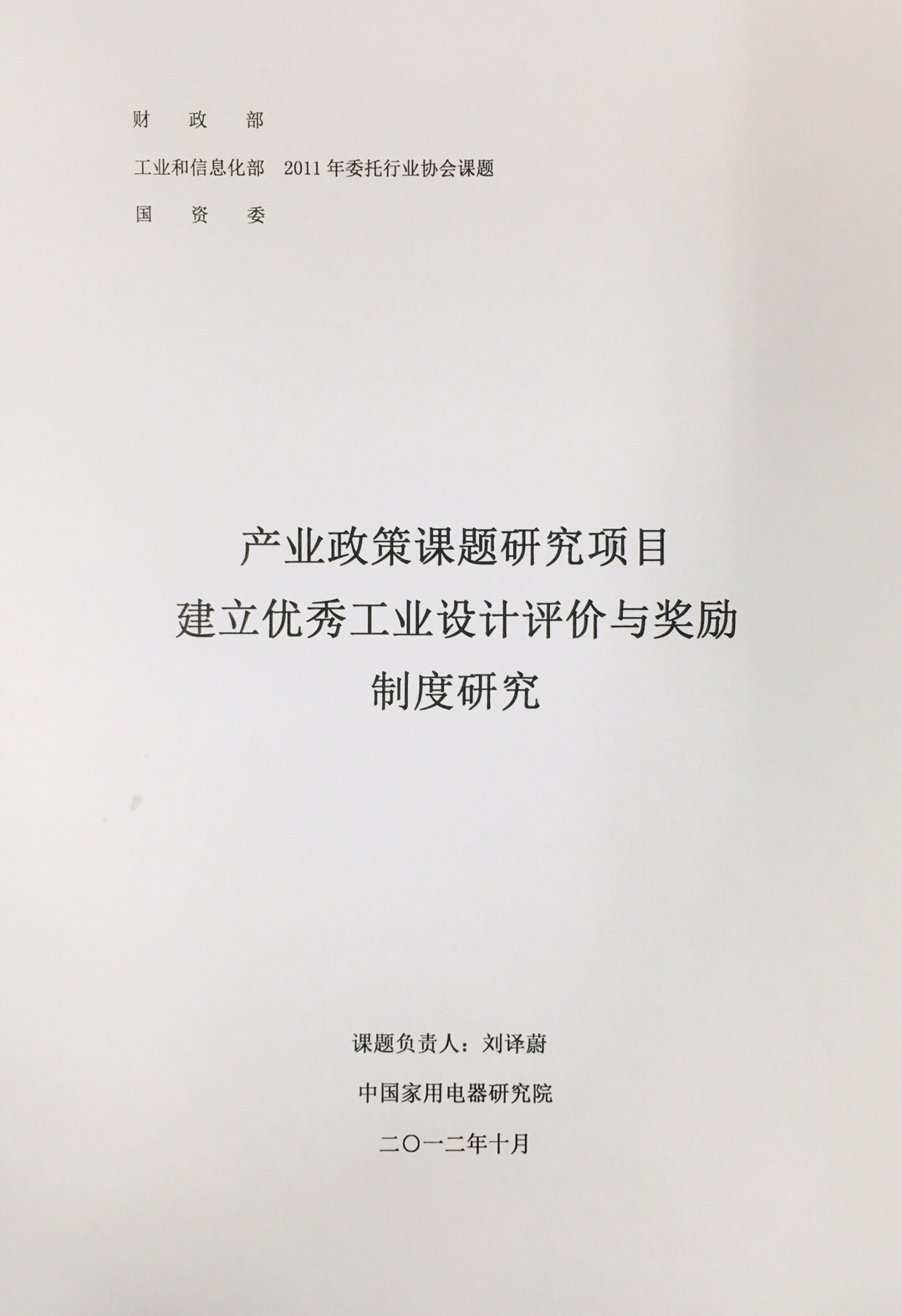 工信部課題《建立優秀工業設計評價與獎勵制度研究》