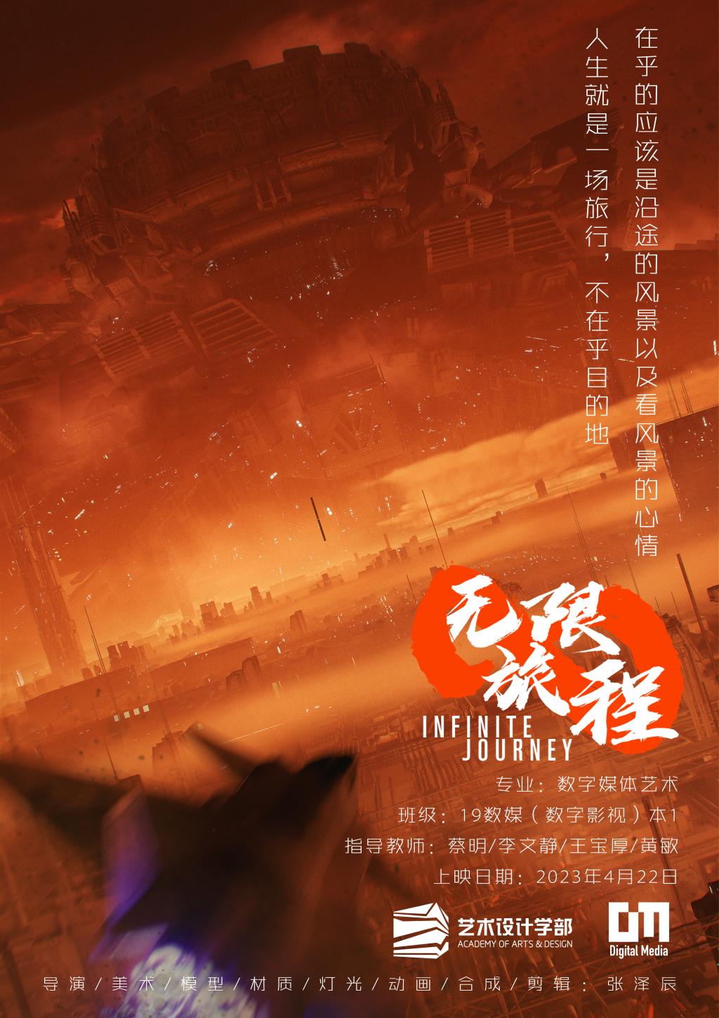 《無限旅程》是一部以筆者過去四年作品為藍(lán)本,主要使用虛幻引擎創(chuàng)作的三維動(dòng)畫短片,以供未來即將進(jìn)入數(shù)媒專業(yè)或還在猶豫的學(xué)生提供一個(gè)參考和啟示,鼓勵(lì)他們勇于探索和創(chuàng)新,用自己的作品為世界貢獻(xiàn)更多的美和價(jià)值。同時(shí),這也是對(duì)筆者大學(xué)四年的一個(gè)總結(jié)。