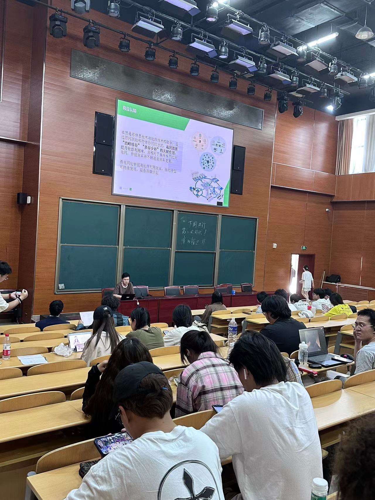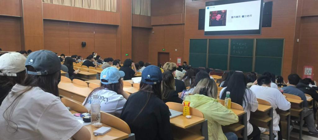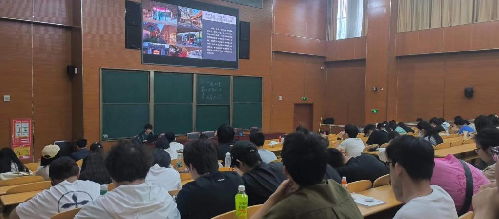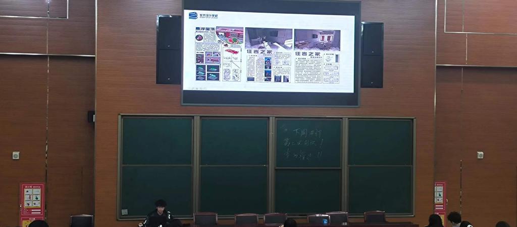 在分享交流中,來自藝術設計學部22環境設計專業的曹佳旺同學將自己參加市級比賽并獲獎的經歷予以分享。他詳細介紹了項目的選題、策劃、實施以及團隊協作等方面的要點和技巧。同時,還分享了在比賽中遇到的困難和挑戰,以及如何克服這些困難的方法和策略。這些優秀的藝術學子們展現出的創新思維和實踐能力讓現場在做的學生驚嘆不已。他們敢于將想法付諸實踐,不畏困難,積極探索,這種精神也感染了現場的聽眾。