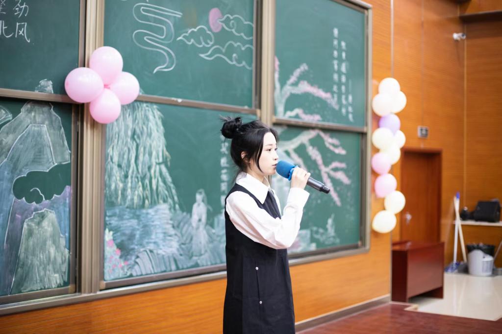 經典傳唱環節將活動推向情感與藝術交融的高潮。林優優以一曲改編版《木蘭詩》震撼開場,清越嗓音與鏗鏘節奏交織,將木蘭從軍的忠勇與思親的柔情演繹得蕩氣回腸;張展的《知否知否》以細膩聲線勾勒出李清照筆下的婉約愁思,引發全場輕聲合唱;何佳駿的《精忠報國》則以激昂高歌點燃愛國熱情,揮灑間盡顯青年擔當;李啟航、李炳男合唱的《青花瓷》如水墨氤氳,將傳統詩詞與現代旋律完美融合,贏得掌聲如潮。
