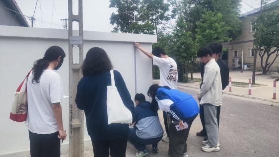基于調研成果,師生圍繞“如何以墻繪藝術賦能廉潔主題”展開專題研討。學生們結合專業所長,提出“將地標性建筑與廉潔主題相融合”“以卷軸形式塑造廉潔之風”等創意方案,并運用激光測距儀、三維建模軟件等工具,對選定墻面進行精準測繪與數據采集,為后續藝術創作奠定科學基礎。在此基礎上,圍繞墻繪設計展開研討,并完成墻面測量工作,為后續藝術美化鄉村、提升村落文化氛圍做好充分準備。