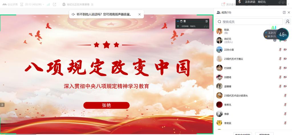 作為支部深入貫徹中央八項規(guī)定精神學習教育系列活動的其中一項,2025年5月28日研究生第三黨支部在第一會議室開展“八項規(guī)定改變中國”專題黨課。黨課由黨支部書記張艷老師主講,支部全體黨員參加學習。