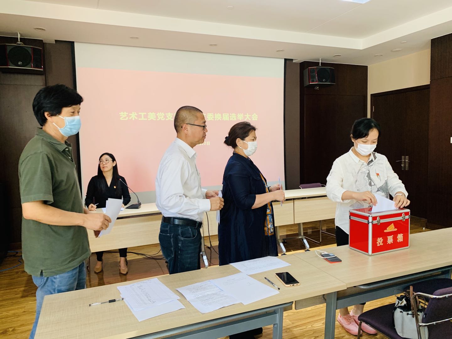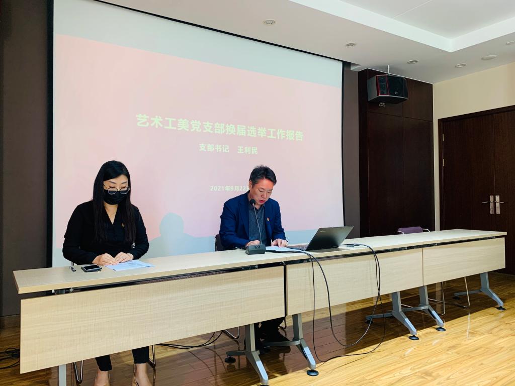 2021年9月22日,藝術工美黨支部進行了換屆選舉工作。參加會議的有43名黨員出席。選舉工作由黨支部常務副書記李寧老師主持,首先她向大家公布了選舉工作流程,大會主要分為兩個換屆,一是聽取和審查委員會工作報告,二是選舉新一屆委員會。會上王利民書記代表支委會對近三年來的工作情況作了簡要回顧,總結了黨支部建立以來的各項黨建工作,黨員的發展、活動的開展、基礎工作的規范等情況,全體黨員對黨支部的工作給予了高度認可。