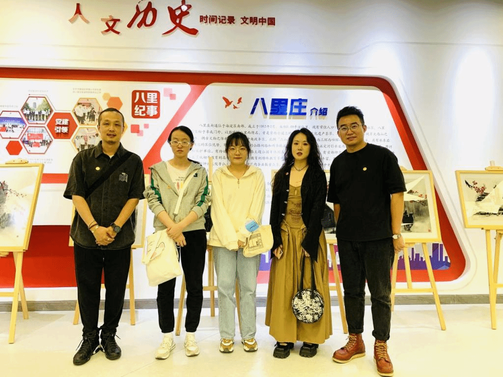 本次展覽中的繪畫作品,是由北京城市學院藝術工美黨支部的4名師生參與創作完成,以海淀區八里莊歷史文化名勝與古跡脈絡為題材,創作的一批精品力作。在海淀區八里莊街道辦事處項目團隊和專家的指導下,藝術工美黨支部的師生們深入基層,歷時1個月創作,深入發掘海淀歷史文化資源和八里莊的“在地文化”,將描繪街道轄區新時代風貌和勾勒歷史變遷集中呈現,以優秀的美術作品為時代人物塑像,賡續紅色血脈,謳歌黨的偉大使命和崇高精神。