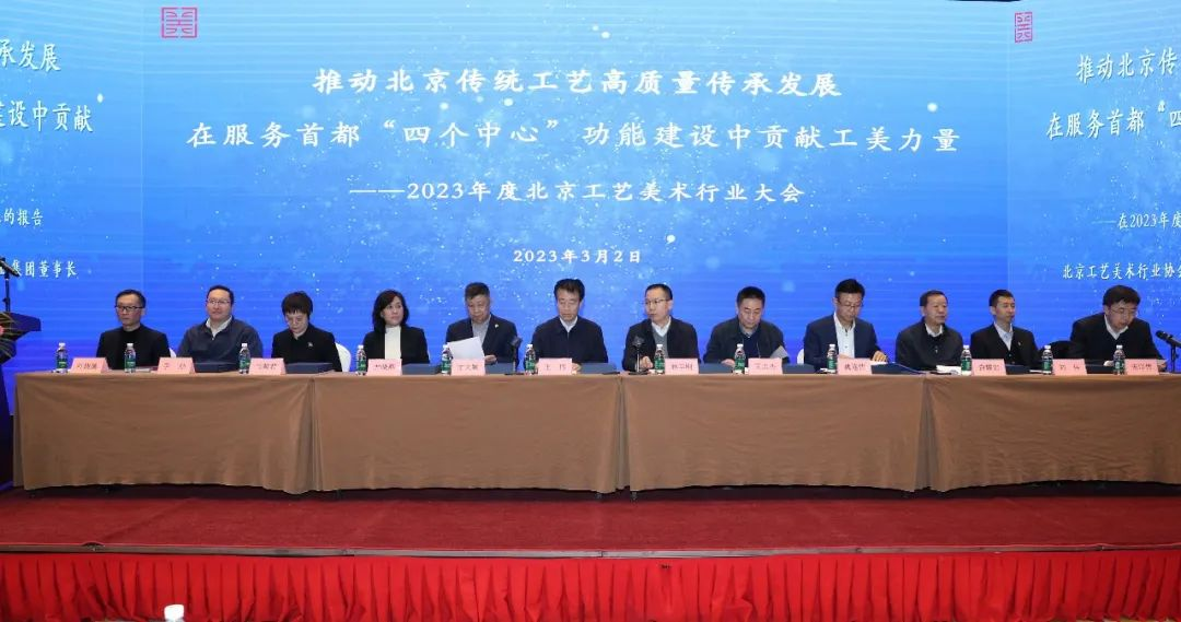 2023年3月2日下午,2023年度北京工藝美術(shù)行業(yè)大會在北京龍爪樹賓館隆重召開。來自全行業(yè)的企業(yè)領(lǐng)導(dǎo)、工藝美術(shù)大師、會員代表等300余人參加大會,支部王利民書記作為北京工藝美術(shù)行業(yè)協(xié)會常務(wù)理事出席本次會議。