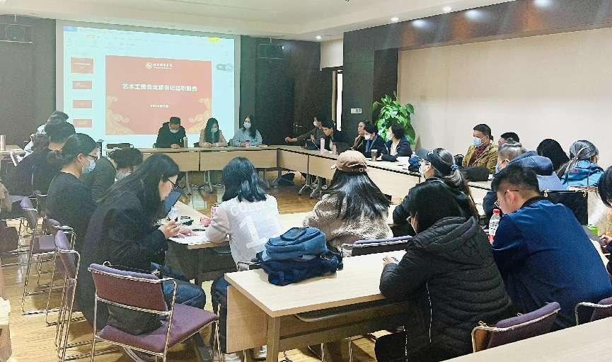 為進一步加強對黨員的教育、管理和監督,保持黨員隊伍的純潔性和先進性,切實發揮黨員的先鋒模范作用,提高黨組織的凝聚力和戰斗力,3月29日,藝術工美黨支部在順義校區會議中心第一會議室召開了2022年度專題組織生活會暨民主評議會。藝術工美黨支部44名黨員參會,會議由黨支部組織委員王書浩主持。