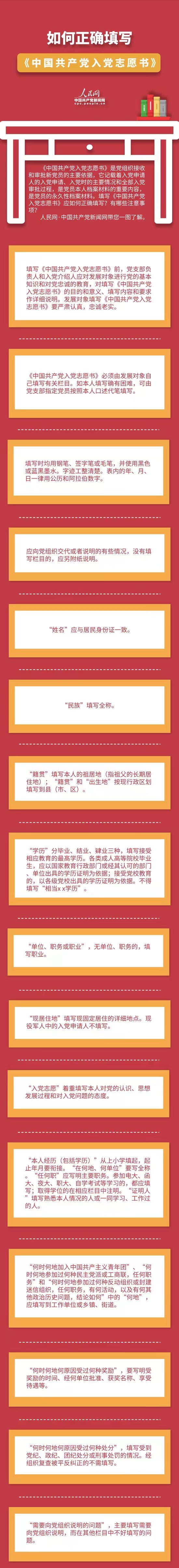 1. 在發展黨員常用文書中,入黨志愿書是唯一的黨組織印發、申請入黨人填寫的材料。入黨志愿有規定的篇幅,不能象其他材料可以不受字數限制地填寫。為此,首先要注意字數。2. 入黨志愿要在“入黨申請書”、“思想匯報”、“自傳”等基礎上進一步加工、提煉,字斟句酌,把自己最想向黨組織表達的思想寫出來。3.入黨志愿要寫的鄭重、莊嚴、真誠。