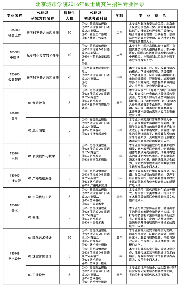 (四)考試科目:詳見《北京城市學院2016年碩士研究生招生專業目錄》。