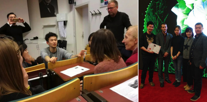 研究生在比利時魯汶大學與師生進行專業交流 學生赴布魯塞爾參加影展后領獎
