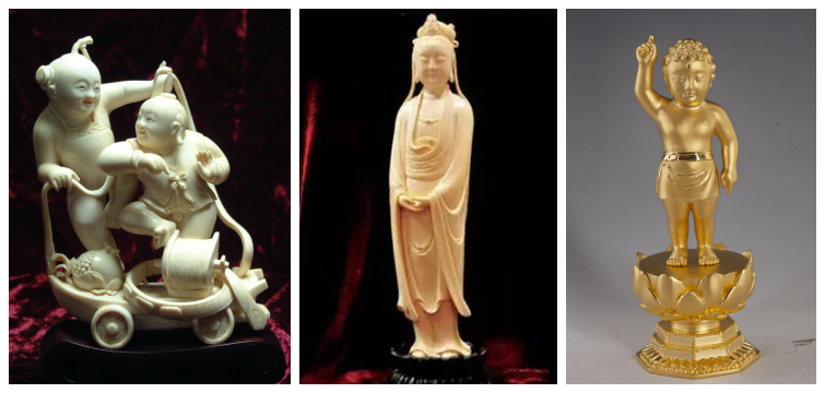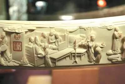 象牙雕刻是一門古老的中國傳統藝術,向以仙姿媚態的古裝仕女和秀麗動人的圓雕花卉見長,形成了高雅、古樸、精細、 遒勁的獨特藝術風格。牙雕制作要經過鑿、鏟、開臉、磨、彩熏等五道工序:鑿,就是開坯成形;鏟,即精細加工;開臉,是做人物面部細致表情;磨,作精細的拋光;彩熏,根據不同的要求,對作品進行染色處理,或熏制成仿古產品。雕刻手法也是多種多樣的,主要運用深淺浮雕、鏤空雕和立體圓雕。