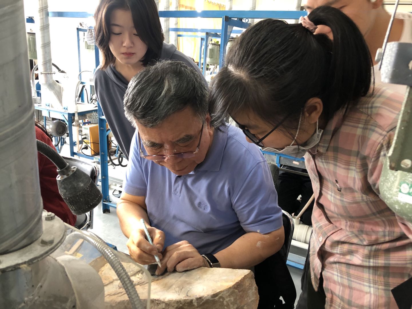 東京藝術大學漆藝教授三田村有純與工藝美術系主任、漆藝博士陳秋榮教授共同為學生授課