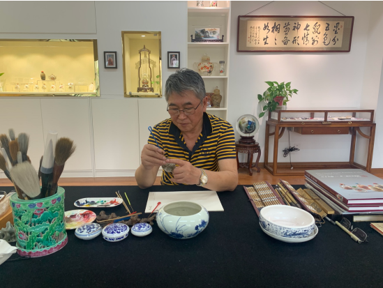 黃三教授內(nèi)畫工作室布置和鼻煙壺內(nèi)畫作品