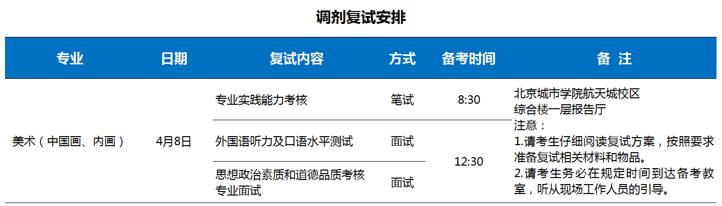 測試辦法:由五位考官組成復試專家小組進行面試。考試形式為考生隨機抽取題目。考試環節包括簡短的自我介紹、問題回答。每位考生考試時間約為10-15分鐘。