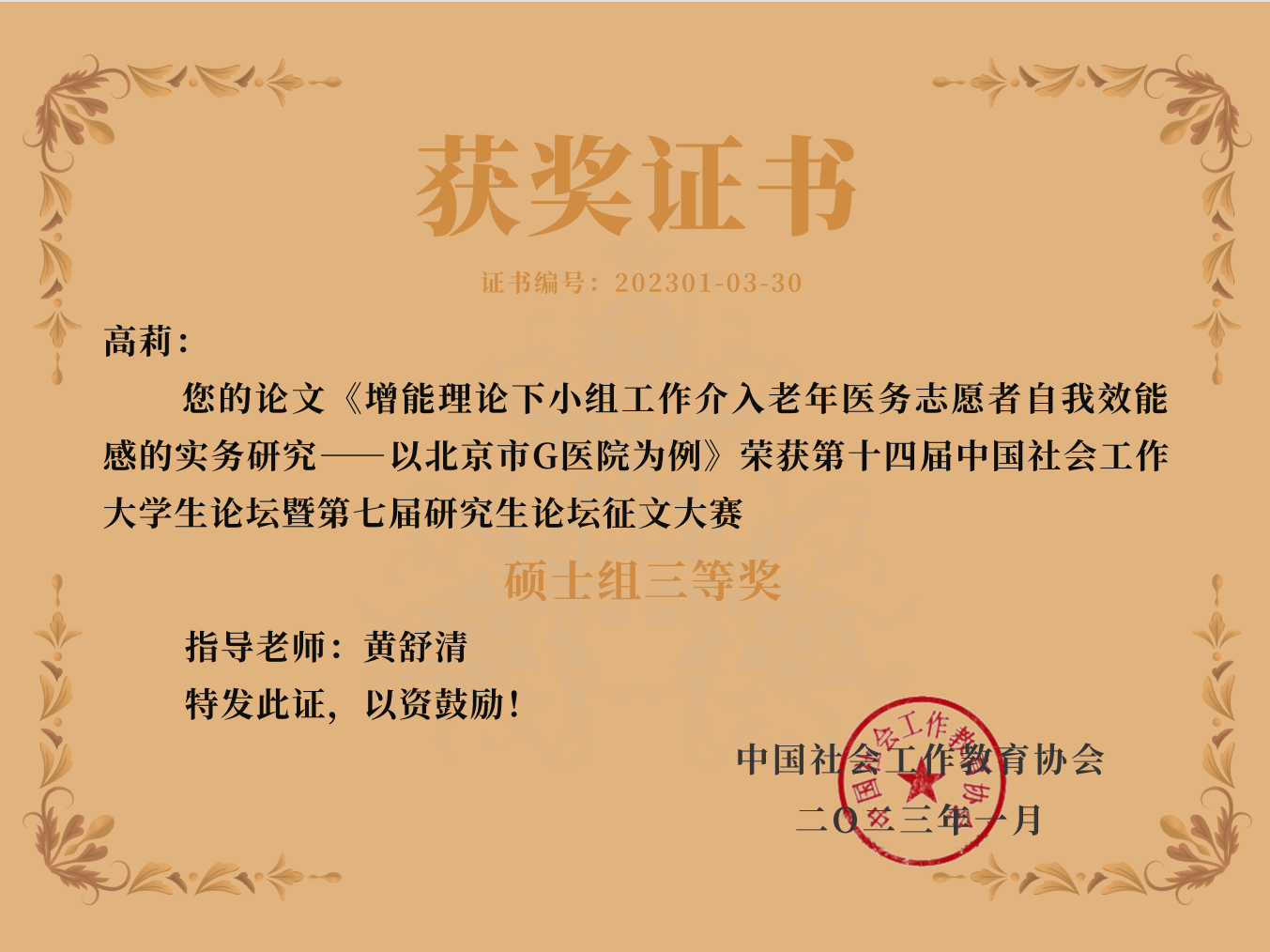 學(xué)生榮獲中國社會工作大學(xué)生論壇征文三等獎