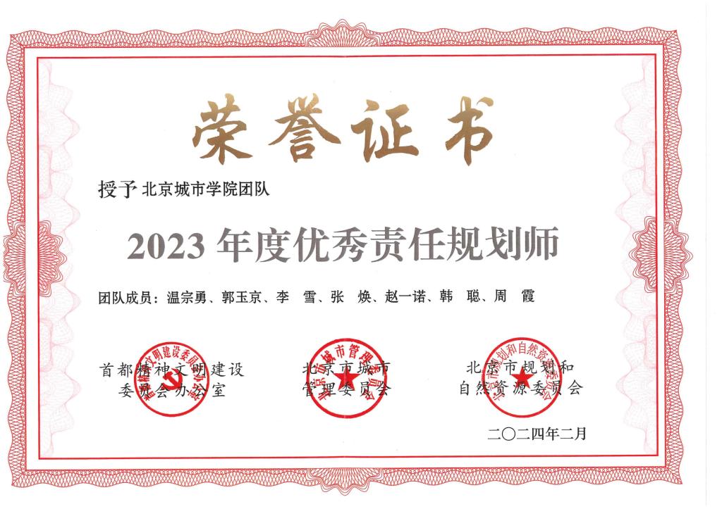 會上,北京城市規劃學會副理事長、秘書長于化云宣讀了2023年度優秀責任規劃師稱號推薦名單。2023年,北京各區共計140個工作扎實、成果顯著的責任規劃師團隊和個人被首都文明辦、市城市管理委、市規劃自然資源委命名為“2023年度優秀責任規劃師(團隊、個人)”。我校順義區楊鎮責任規劃師團隊、順義區漢石橋責任規劃師團隊、平谷區平谷鎮責任規劃師團隊均榮獲北京市2023年度優秀責任規劃師稱號,我校責師團隊已多次獲評此稱號。