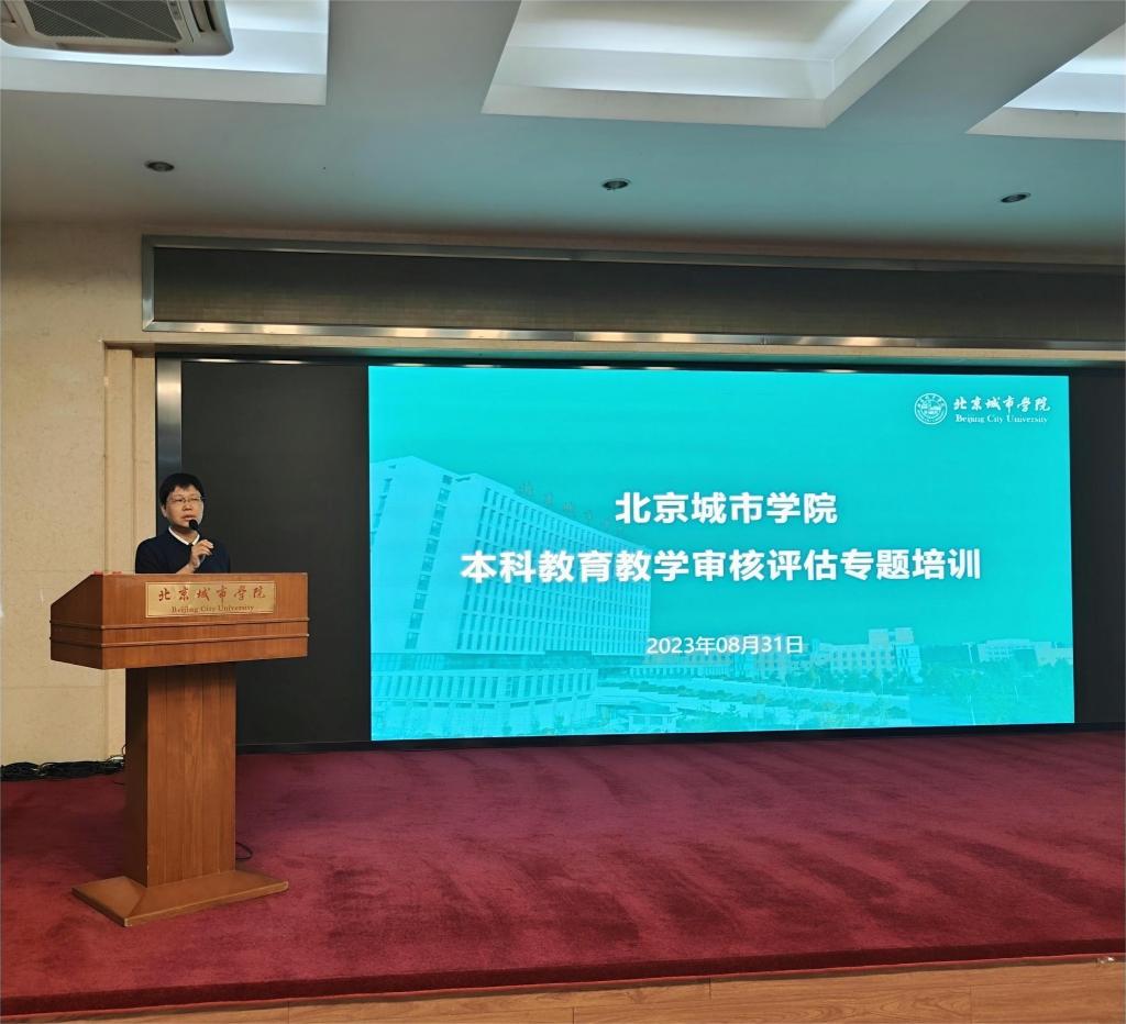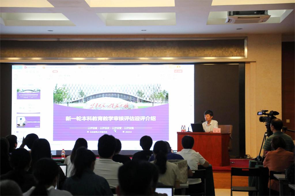 8月31日上午,我校在中關村校區召開本科教育教學審核評估專題培訓會。北京建筑大學教務處處長韓淼教授受邀作專題報告,學校審核評估領導小組、評建辦公室、各職能部門與教學單位評建工作組成員共計150余人參加培訓。會議由副校長胡麗琴主持。