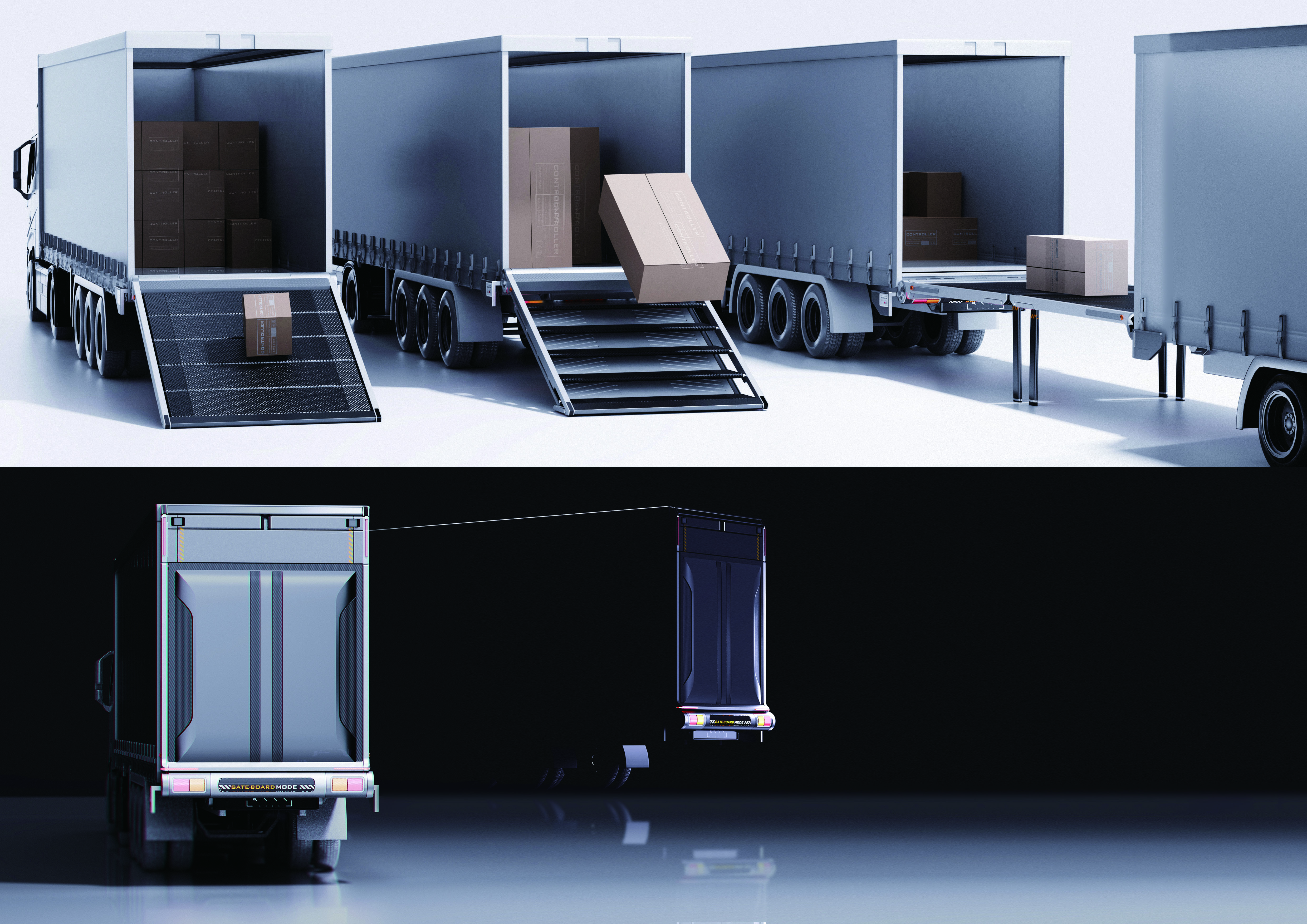 獲獎(jiǎng)作品Truck Door with Conveyor Belt將貨車門板、傳送帶、樓梯、貨物中轉(zhuǎn)平臺(tái)的功能一體式整合,提供了一種更加智能化、安全化和高效化的物流裝卸解決方案,不僅提升了貨物裝卸以及物流中轉(zhuǎn)效率,也為用戶創(chuàng)造了更便捷和安全的使用體驗(yàn),適用于物流運(yùn)輸過程中的多種場景。