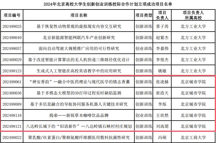 近日,北京高校創新創業人才培養指導中心公布了2024年北京高校大學生創新創業訓練校際合作計劃立項結果,我校推薦的“基于多模態大模型的3D打印過程實時缺陷監測”等5個項目全部成功立項。
