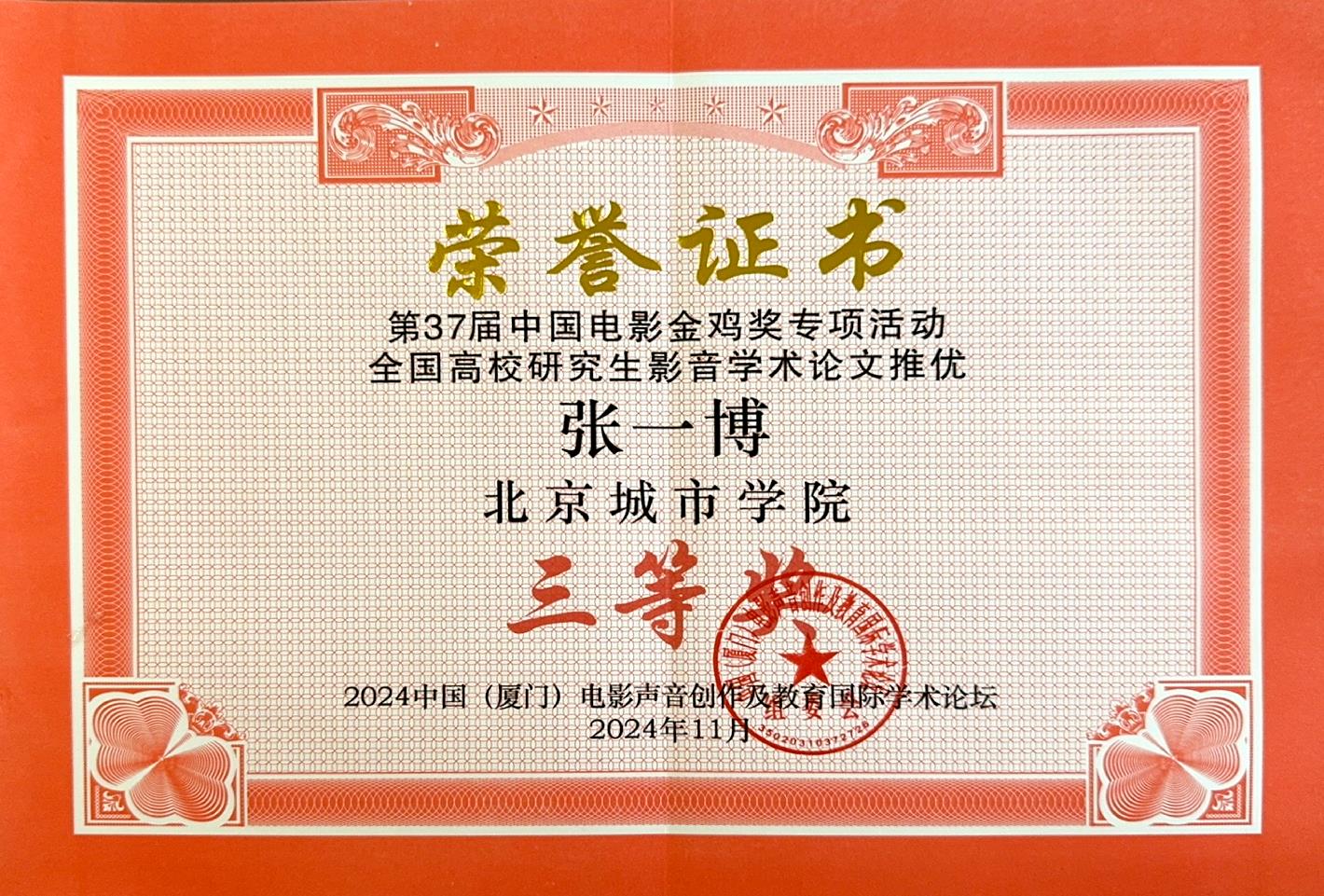 11月16日,第37屆中國(guó)電影金雞獎(jiǎng)專項(xiàng)活動(dòng)——2024 中國(guó)(廈門)電影聲音創(chuàng)作及教育國(guó)際學(xué)術(shù)論壇暨中國(guó)電影家協(xié)會(huì)電影聲音藝術(shù)工作委員會(huì)年會(huì)在廈門金沙書(shū)院順利召開(kāi),我校參加活動(dòng)并獲全國(guó)高校研究生影音學(xué)術(shù)論文推優(yōu)“優(yōu)秀組織獎(jiǎng)”。