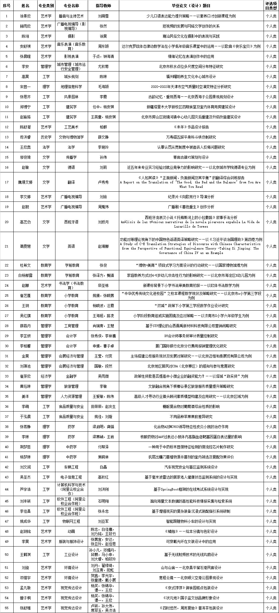 近日,北京市教委發布了2024年北京高校優秀本科畢業設計(論文)名單,我校共獲個人類優秀畢業設計(論文)55篇。