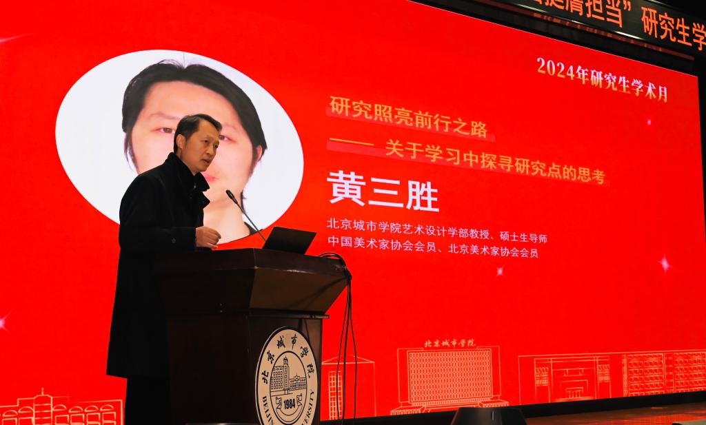黃三勝教授以“研究照亮前行之路——關于學習中探尋研究點的思考”為主題,以藝術設計中研究點的探尋為主線,鼓勵研究生將找到的研究點積極應用于項目實踐。