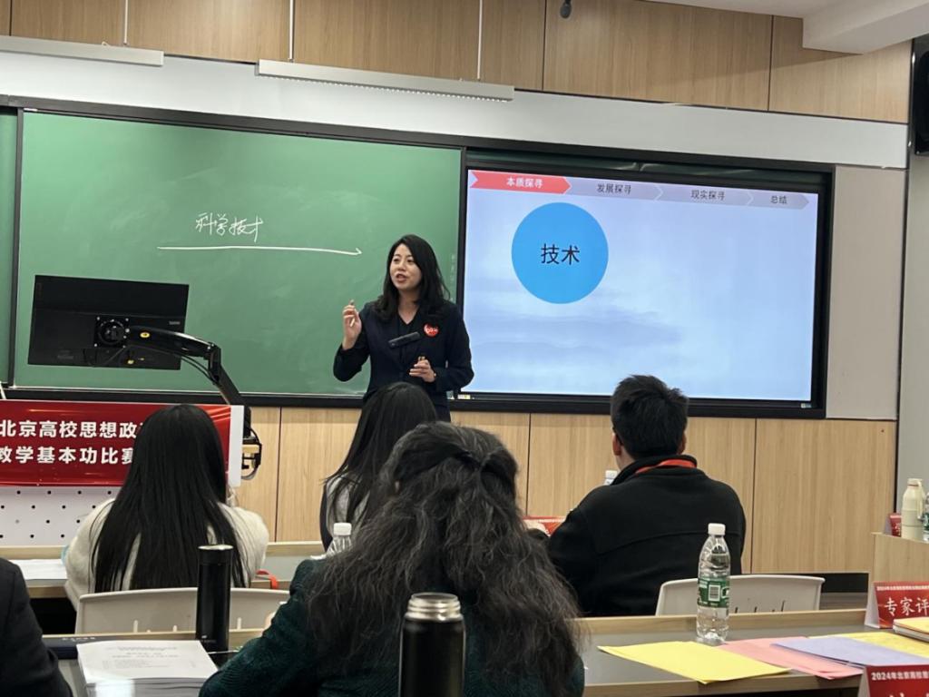 北京高校思想政治理論課教學基本功比賽由北京市委教育工委主辦,賽制分為預賽和決賽。預賽按照思政課程設置了“習近平新時代中國特色社會主義思想概論”“馬克思主義基本原理”等七個賽道。劉佳佳在“馬克思主義基本原理”賽道以預賽一等獎的成績、劉浩然在“習近平新時代中國特色社會主義思想概論”賽道以預賽二等獎的成績雙雙進入決賽。