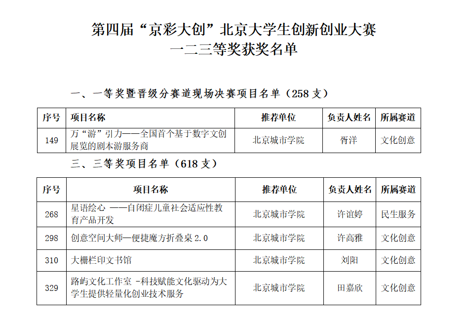 近日,我校學生在2025年“京彩大創”北京大學生創新創業大賽中喜獲佳績,歷經激烈角逐,最終斬獲分賽道一等獎1項、三等獎4項,獲獎項目總數創歷史新高。其中,獲得分賽道一等獎、晉級現場總決賽的團隊來自表演學部,參賽項目為“萬‘游’引力——全國首個基于數字文創展覽的劇本游服務商”(指導老師:王芊、潘耕)。