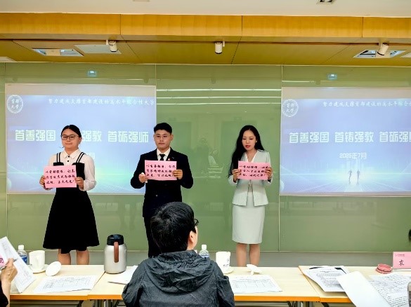 比賽環(huán)節(jié)由方案設(shè)計(jì)、現(xiàn)場(chǎng)展示和回顧總結(jié)三部分組成。參賽隊(duì)伍以“首都大學(xué)”在學(xué)習(xí)貫徹《教育強(qiáng)國(guó)建設(shè)規(guī)劃綱要(2024-2035年)》的基礎(chǔ)上即將開始編制學(xué)校的“十五五”時(shí)期教職工隊(duì)伍發(fā)展規(guī)劃為背景,立足各單位管理崗位實(shí)際工作需要,提出編制工作的整體思路與計(jì)劃,并以弘揚(yáng)教育家精神為主題,設(shè)計(jì)2項(xiàng)特色工作方案,對(duì)所設(shè)計(jì)的方案進(jìn)行現(xiàn)場(chǎng)展示講解,并對(duì)設(shè)計(jì)和展示情況進(jìn)行回顧總結(jié)。
