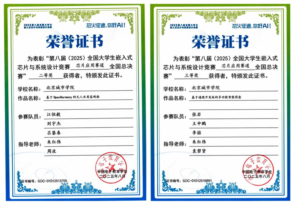 近日,第八屆全國大學生嵌入式芯片與系統設計競賽圓滿落幕。我校信息學部參賽團隊憑借扎實的專業功底與突出的創新設計能力,歷經線上評審、北部賽區復賽及全國總決賽的激烈角逐,最終脫穎而出,斬獲多項優異成績。