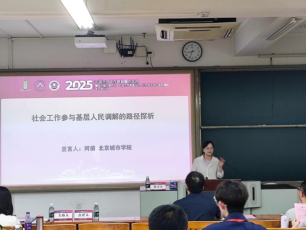 我校公共管理學部副主任何倩副教授從價值契合與法律依據角度,論證了社會工作參與基層調解的可行性。她強調社工可通過賦權增能、系統視角分析矛盾根源,并借助動態協議與持續跟進來提升調解成效,彌補傳統調解在情感與心理支持方面的不足。