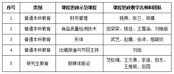 近日,中共北京市委教育工作委員會和北京市教育委員會發布了《關于公布課程思政示范項目名單的通知》(京教函〔2022〕55號),我校推薦的《財務管理》《食品質量檢測技術》《形體》《出鏡報道與節目主持》《新媒體前沿》5門課程獲評北京市課程思政示范課程,相應的授課教師和教學團隊被認定為北京市課程思政教學名師和教學團隊。