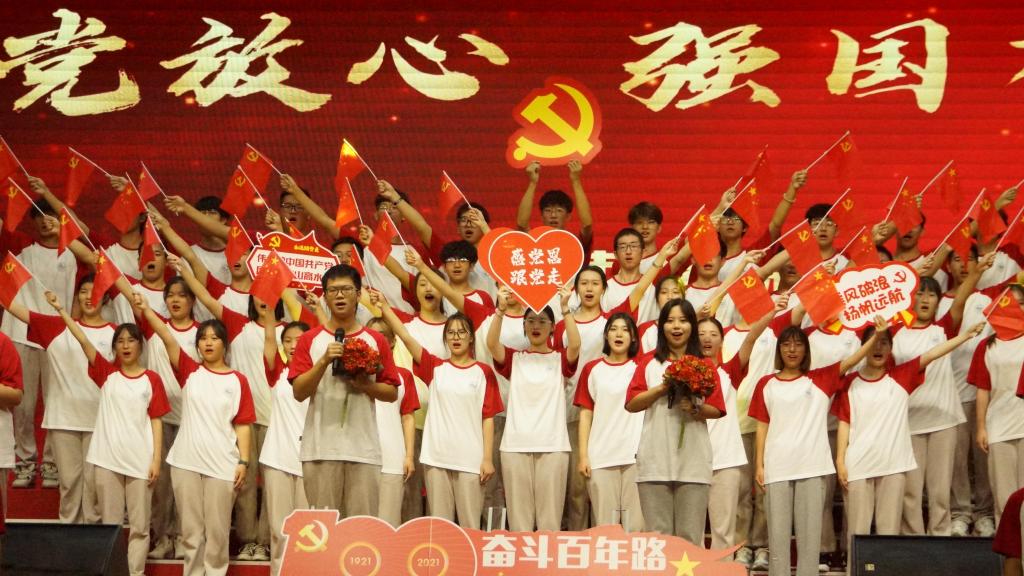 大會在全場師生高聲合唱《沒有共產黨就沒有新中國》的嘹亮歌聲中落幕。