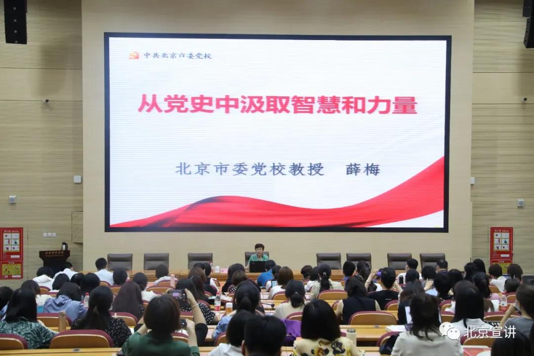 為深入開展黨史學(xué)習(xí)教育,7月16日,我校聯(lián)合市委講師團,邀請中共北京市委黨校教授薛梅,以《從黨史中汲取智慧和力量》為主題作黨史學(xué)習(xí)教育宣講報告。我校各基層黨組織書記、副書記、基層黨支部黨務(wù)干部200余人參加學(xué)習(xí)。