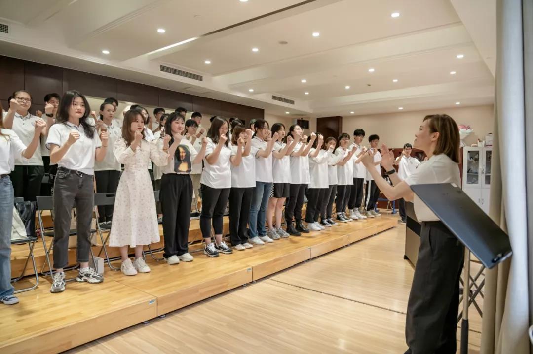 貫穿于訓練始終的是北京城市學院持續開展的黨史學習教育。臨時黨、團支部將參與慶祝大會活動和訓練當做一次次最生動、最實際的實踐教育。分享黨史知識、參觀紅色場館、齊上音樂黨課……形式新穎的黨史學習教育方式加深了參演師生對作品演繹的理解。同學們生動地形容,每每唱到“唱支山歌給黨聽,我把黨來比母親”這句歌詞的時候,瞬間就覺得心中涌動著的、流淌著的都是對黨的深情和熱愛。