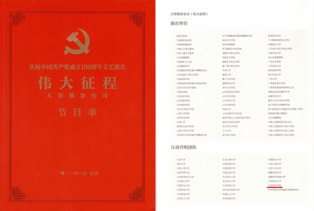 我校派出的260名參演師生,與其他27所北京高校、中學的7000余名師生一起組成的互動合唱團,共同完成了《偉大征程》文藝演出互動合唱任務,向黨的百年華誕獻禮。