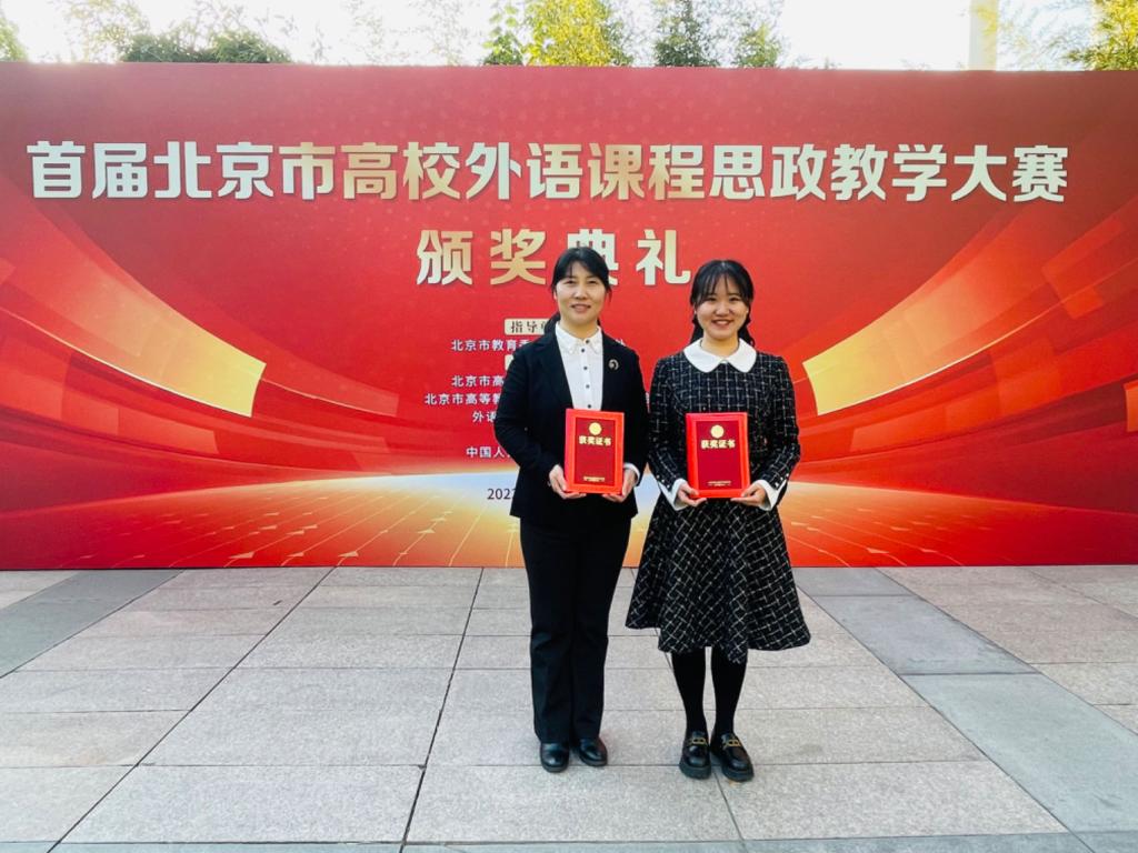 10月22日,首屆北京市高校外語課程思政教學大賽決賽在中國人民大學舉辦。我校國際文化與傳播學部英語教研室教師趙靖娜和公共英語教研室教師王昕怡分別榮獲英語專業組(本科)及研究生英語組一等獎和大學英語組(本科)一等獎。